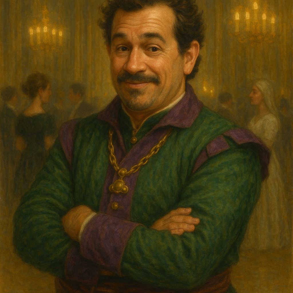 A smiling devil in fine boots, selling loyalty by the contract and betrayal by the clause.